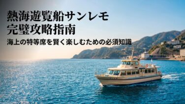 熱海遊覧船サンレモの最新料金や時刻表、気になる欠航情報の確認方法を詳しく解説します。カモメの餌付けや海中展望室の楽しみ方、小型犬との乗船ルール、花火大会の特別便の予約術まで網羅。駐車場やアクセスもバッチリです。この記事を読めば熱海遊覧船の魅力が分かり、旅行がもっと楽しくなります。