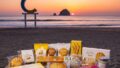 デートの締めくくりは、夕暮れ時のサザンビーチへ。夕日に染まる空と海、そして富士山のシルエットが織りなすマジックアワーは、言葉を失うほどの美しさです。